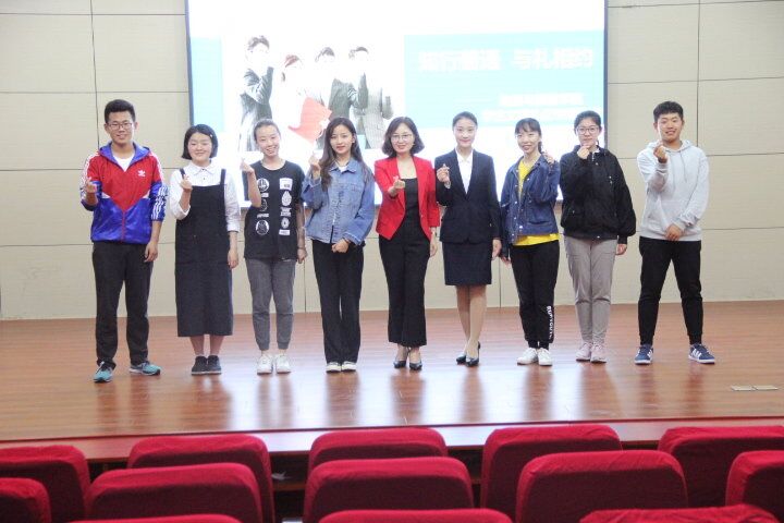 副院长、明德培训首席礼仪培训老师赵晓利担任主讲嘉宾,党委副书记刘伟出席,2017级与2018级学生参加。