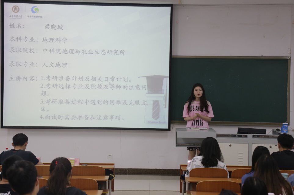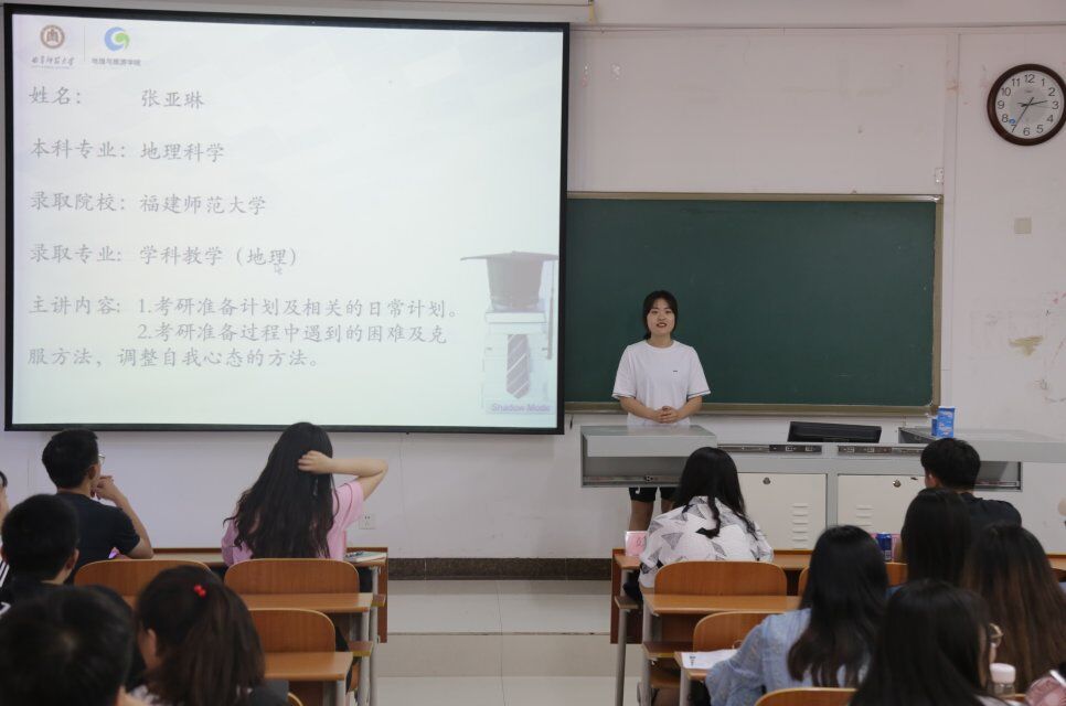 会上,主持人对参加本次交流会的嘉宾进行简单介绍,并指出此次交流会主要针对自然地理与资源环境、人文地理与城乡规划、地理科学专业的学生。7位学生代表分别从报考黄金城官网