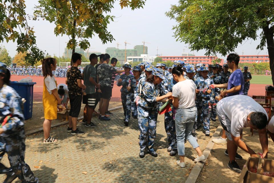 于西操场军训场地开展“送月饼,传温情”情满中秋系列活动。团委学生会主席团亲临现场指导慰问,副部代表为全体2019级新生派发中秋月饼,充分营造了“和谐、团圆、和睦、团聚”的浓厚节日气氛。