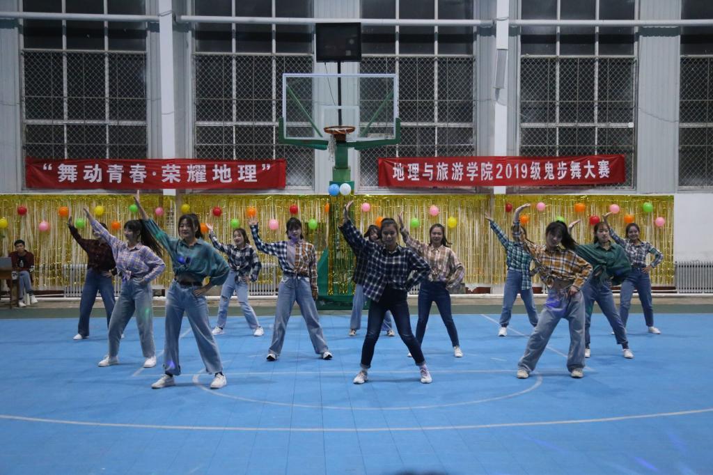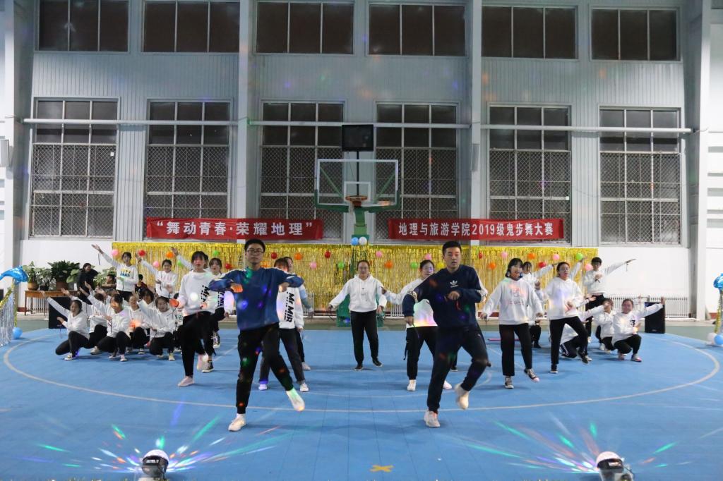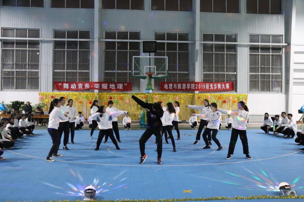 活动伊始,啦啦操队为观众献上激情洋溢的开场舞,引燃现场气氛。舞台之上,各班参赛人员服装整洁、仪表端庄、热情洋溢、活力十足,舞姿优美,动作准确到位,表演情感丰富。舞蹈编排合理完整,伴随着节奏感极强的音乐,他们踏着整齐有力的步伐,尽情诠释积极向上、自强自信、热爱生活的风采。地理科学六班及公费师范生班表演深入人心,列队出场,步伐整齐、精神抖擞,跟随音乐,他们拍手轻歌,动作娴熟、张弛有度,动作中充满自信,微笑中洋溢着青春。其间,黄一凡、杨璐带来《月光下的凤尾竹》,让观众领略到傣族舞蹈的优美。李翼展献唱的《依然爱你》,宋晓燕、石龙康合唱的《光年之外》,为鬼步舞大赛增光添彩。整场比赛精彩纷呈,高潮不断,为到场观众奉献一场视听盛宴。