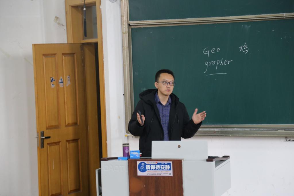 会议伊始,于伟从“什么是地理学”展开,对地理科学的起源与发展历史进行了详细介绍,使同学们对地理学学科体系更加明确。同时,他向同学们列举新出现的地理学分支,分析同学们当前会面对的机遇与挑战,并对如何学好地理学提出了相关建议,他希望同学们在学习基础知识的同时能将理论与实践紧密结合。会议结束前,他向同学们推荐了多种学习地理的平台,以便同学们可以随时解除知识疑惑。