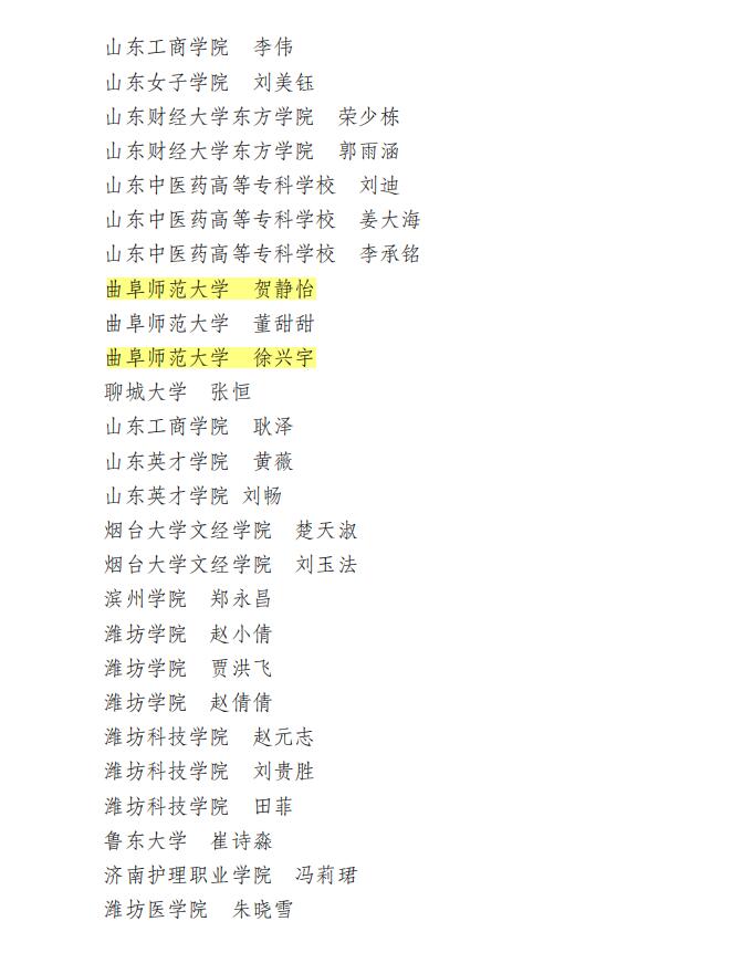 宁晓文、吴军、李梅3位老师被评为省级“优秀指导教师”;贺静怡、徐兴宇、张金雷、宋壮威、荀志远、杨康、孙玉菁、程琳琳8名同学荣获“优秀学生”称号;“古建巡礼,执笔绘梦”实践队、小海螺青春志愿服务队、“文化邮递”实践队3支队伍荣获“社会实践活动优秀服务队”称号。