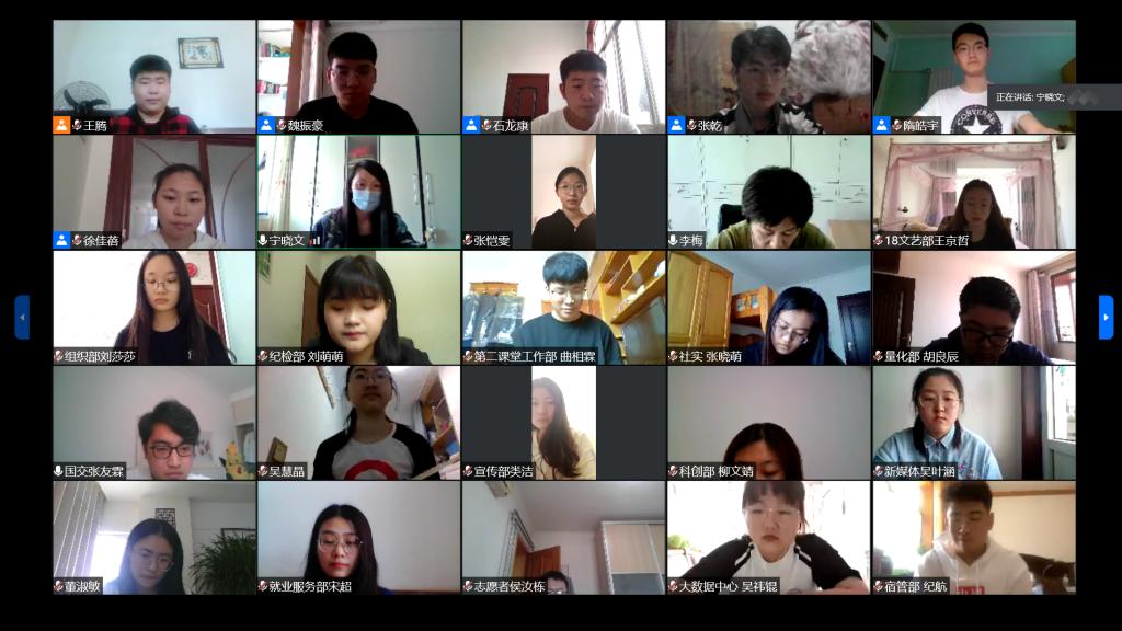 团委书记宁晓文主持会议,全体主席团、部长参加; 5月20日召开2020届团委学生会全体例会,党委副书记刘伟、2019级辅导员李梅、2017级辅导员董青出席会议,由黄金城官网