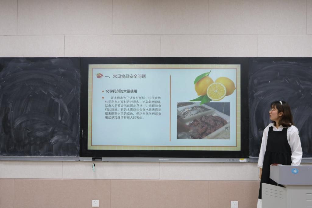 安全教育宣讲团于S203进行食品安全教育宣讲活动。活动由宣讲团成员谢丽艳主讲,地科五班、六班全体同学参加。