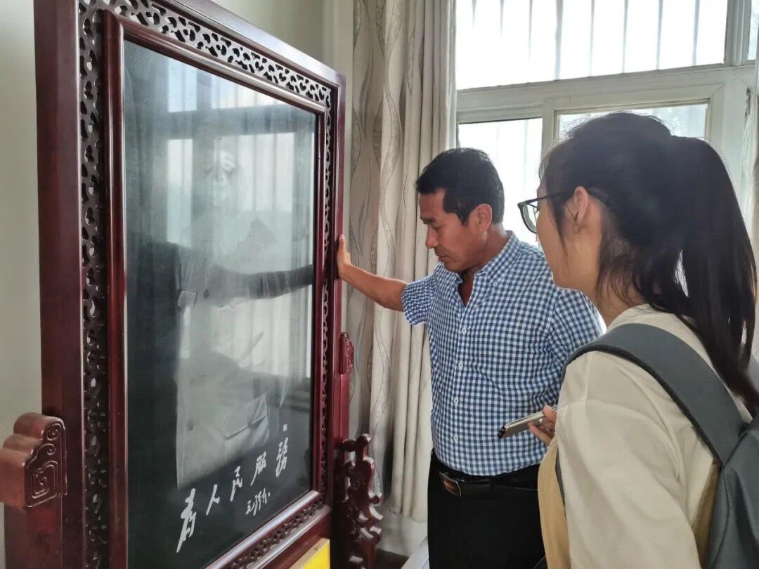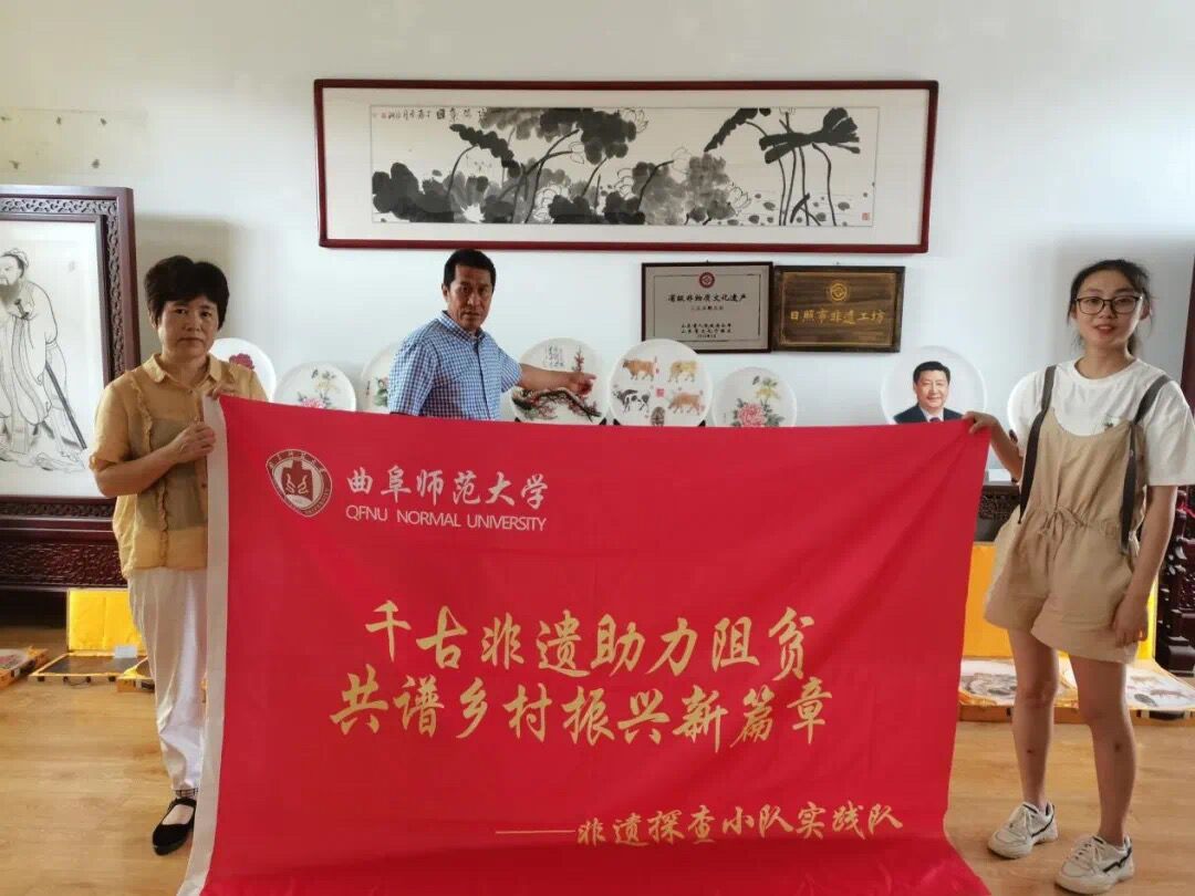 “影雕”是一种传统与现代结合的手工雕刻艺术,取材中国黑石材和汉白玉,运用“针白黑”浅雕工艺、“黑白明暗”的光学原理以及油画技艺,精心雕刻出人物肖像、山水壁画以及花鸟鱼虫等,作品线条流畅、栩栩如生。2016年,三庄影雕被山东省人民政府公布为第四批省级非物质文化遗产。本次寻访省级非遗传承人崔华,进一步充实了实践队员对“影雕”这项非遗的认知,同时加深了对非遗助力乡村振兴的理解,为日后的实践活动以及对非遗的宣传奠定了良好基础。