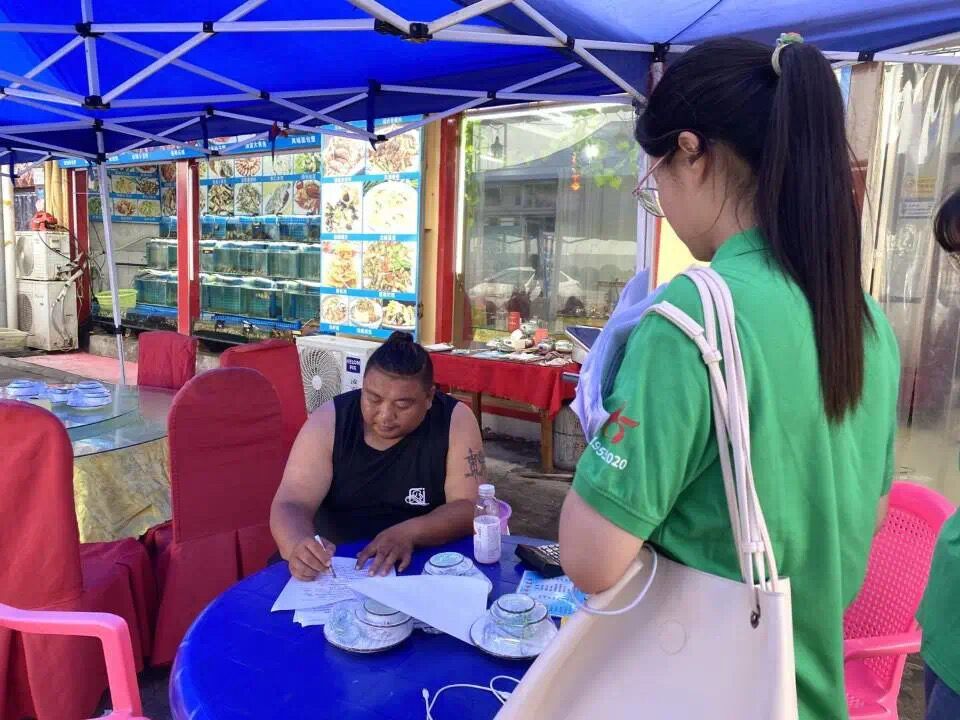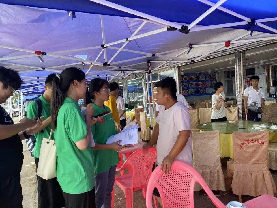 另一部分队员来到摊位及餐厅里,对摊主负责人进行采访,询问他们餐厅中水的安全保障及用水量问题,负责人们也积极配合,对我们所提问的问题根据真实情况回答,对我们的调研提供了极大的帮助。活动结束后,大家表示一天的活动让大家收获感满满,虽累犹荣,随后实践队员围绕本次活动进行总结。