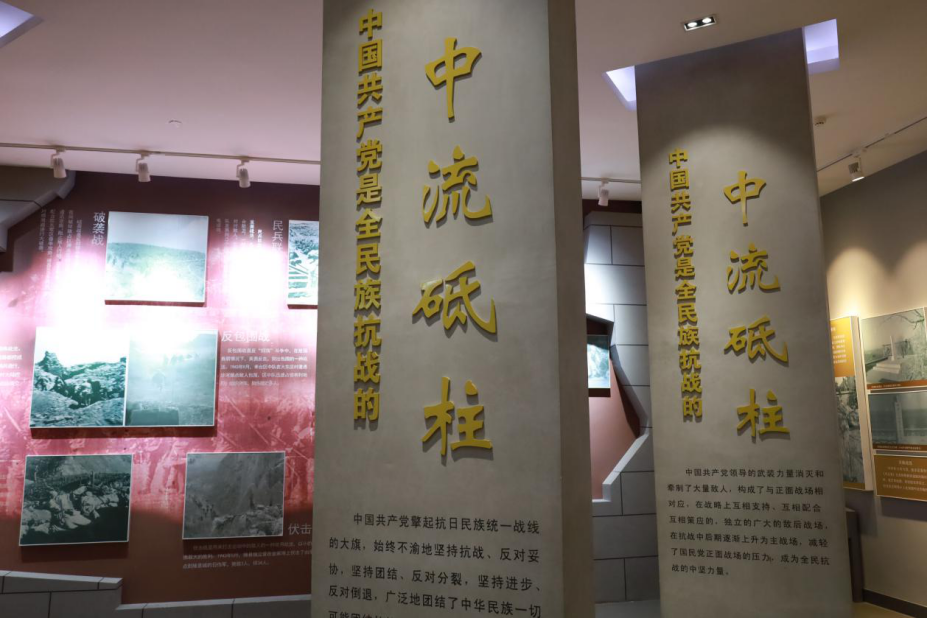 实践队队员通过观看文字资料和图片资料,了解从战略防御阶段到战略相持阶段再到战略反攻阶段,在共产党的带领下,建立的大大小小的革命根据地。胶东地区从抗战初期就一直在开辟敌后战场,胶东特委领导发动天福山起义,组建山东人民抗日救国军第三军。玉皇顶起义后,掖县县委领导成立胶东抗日游击队第三支队,在胶东形成了由共产党领导的两支最大抗日武装东西并立的局面。随着掖县抗日根据地的创建和巩固,胶东党政军领导机关相继迁驻掖县,三支队与三军在沙河合编为胶东第一支八路军部队一一山东人民抗日游击第五支队;胶东区第一届党代会在郭家店镇葛城村召开,胶东抗战中心在掖县正式形成。