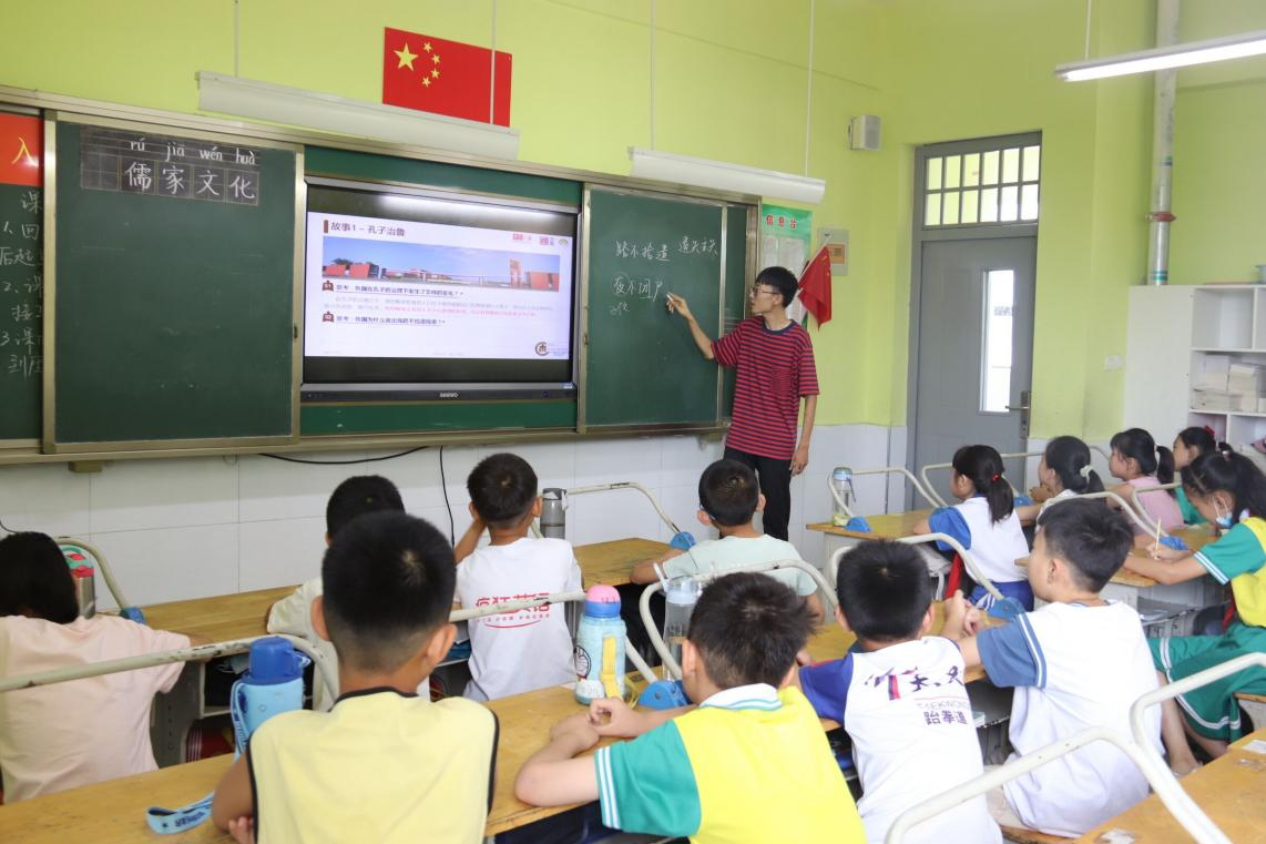 支教团根据乡村小学学生的年龄特点、心理特征与教学需求,有针对性地开设了电影课、音乐课、体操课、非物质文化遗产体验课等丰富多彩的教学课程,将德育、智育、体育、美育、劳育贯穿于课堂教学中、科普宣讲中、日常锻炼中、艺术审美中、田间劳作中,育德于教,育教于践,育践于用,教育引导同学们涵养道德、崇尚科学、增强体魄、健全人格、热爱劳动,潜移默化地引导学生树立正确的世界观、人生观和价值观,达到“润物细无声”的效果。