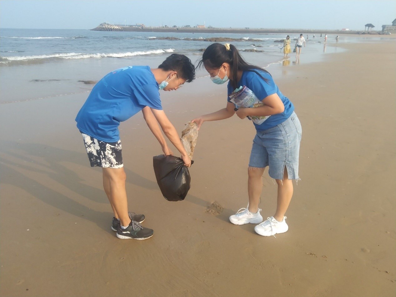 为进一步提高游客们的文明出游意识,小海螺实践队的志愿者们通过捡拾海岸沙滩上的塑料、废弃物等垃圾,向到此的市民和游客传递文明行为。还未退潮的海滩,风大浪高,可阳光海滩景区宽阔洁净的海滩,柔软细腻的沙子仍吸引了大量的游客前来游玩,孩子们水中嬉戏的身影,海滩上静坐沐浴海风的玩伴无一不令人心情愉悦。志愿者们秉承“奉献、友爱、互助、进步”的志愿服务精神,手里拿着黑色垃圾袋,仔细捡拾沙滩上的每一个塑料袋、饮料瓶、卫生纸,甚至是小孩子遗留下来的玩具等垃圾和废弃物,并按垃圾分类的标准按袋分装,进行分类回收。下午的海边太阳依旧不留情面的高高挂起,没过多久,志愿者的脸上便布满了细密的汗珠,前来游玩的人们纷纷向志愿者们投来赞许的目光。活动持续一个多小时,附近的海滩和志愿者初到时已大有不同,整个海滩变得干干净净。“看着志愿者的劳动付出,我们也有很深的触动,以后我们在游玩过程中文明出游,做一个文明游客,不随地乱扔垃圾,并向他们学习,争做文明行为的传播者。”到此游玩的日照市市民李女士激动地说。活动结束后,小海螺青春服务队成员王元元回忆到这句话时,依然感触良多,她表示,此次志愿服务的意义不仅在于给人们带来方便和满足,更重要的是,能够将“文明出游”理念传播给每位游客,引导人们养成良好习惯,彰显出新时代大学生积极承担社会责任,用担当书写无悔青春的青年伟力。
