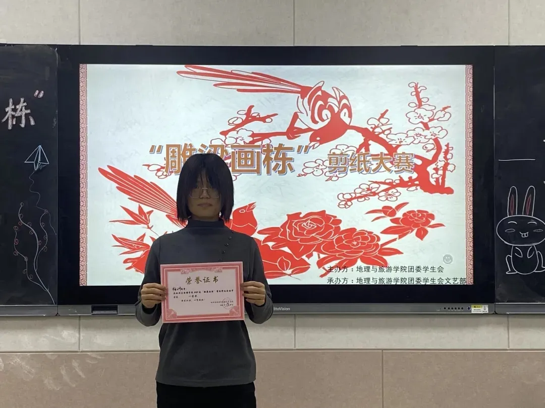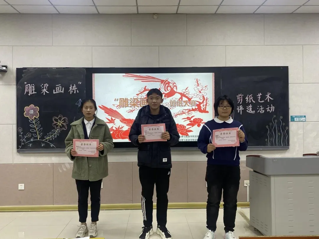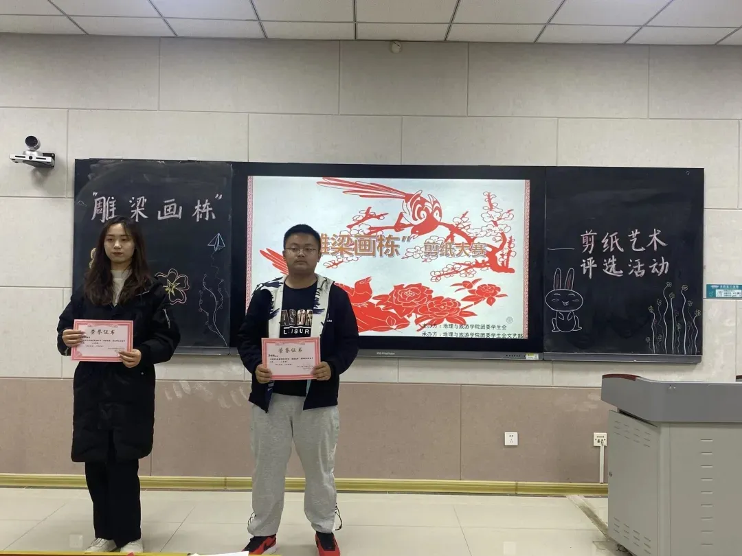 各位参赛选手按照抽签顺序依次上场展示个人剪纸作品,讲解传统剪纸文化。选手讲述着传统剪纸文化的悠久历史和独特魅力,声音洪亮,情感真挚,仪态大方,同时,几位选手也带来了自己精美的剪纸作品,进行现场展示,赢得观众和评委的一致好评。选手邀请观众体验剪纸,并现场进行简单的教学,剪纸独特的魅力使观众们沉浸其中,难以自拔。随后,剪纸协会展示了许多惟妙惟肖的剪纸作品,文艺小组带来精彩的节目。活动最后,对获奖选手进行颁奖。