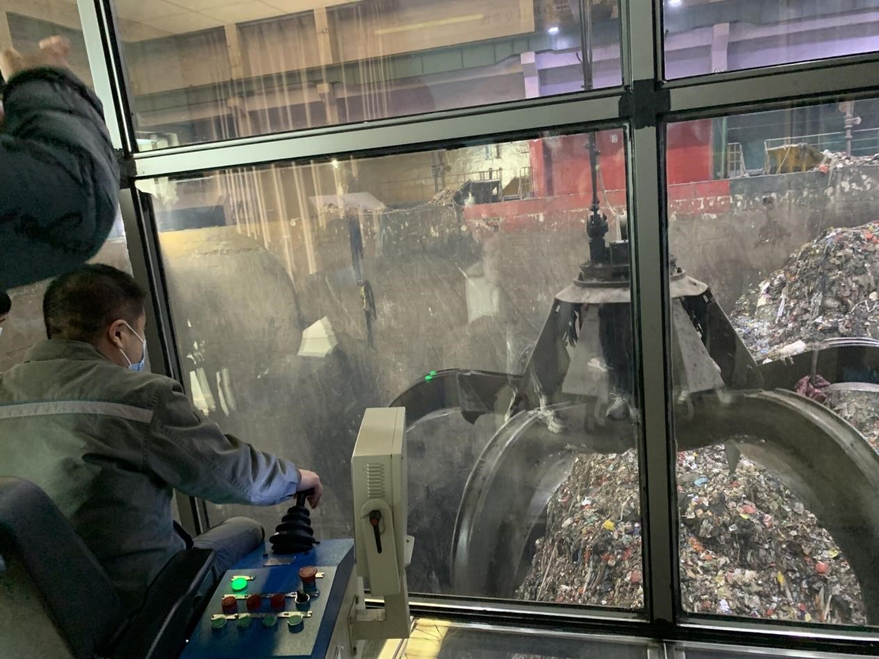 当参观至垃圾分类堆放区时,实践队员对机械手臂产生了极高的兴趣。据操作人员的讲解,实践队了解到机械手臂有抓取、搅拌、涂料、压实的功能,以此完成生活垃圾的分类堆放。此外,实践队员还了解到该堆放区为长宽55.4米,高24米的立方体架构,日处理垃圾可达1400吨至1500吨,通过7天以上的发酵运送至焚烧炉进行产能。实践队员不禁产生疑惑问道“那该如何区它们是否已经发酵呢?”工作人员笑而不语,用手指分别向堆放区两侧。实践队员观察到发酵区的垃圾颜色较深,而新运进来的垃圾颜色较浅,疑惑也随之解开。