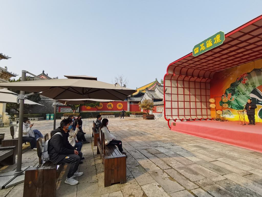 午后,在景区工作人员的陪同下,实地调研组来到世界著名非遗——柳琴戏表演场地,坐在形似巨轮的观看席上,思绪翩然纷飞,静静感受着柳琴戏的前世今生。