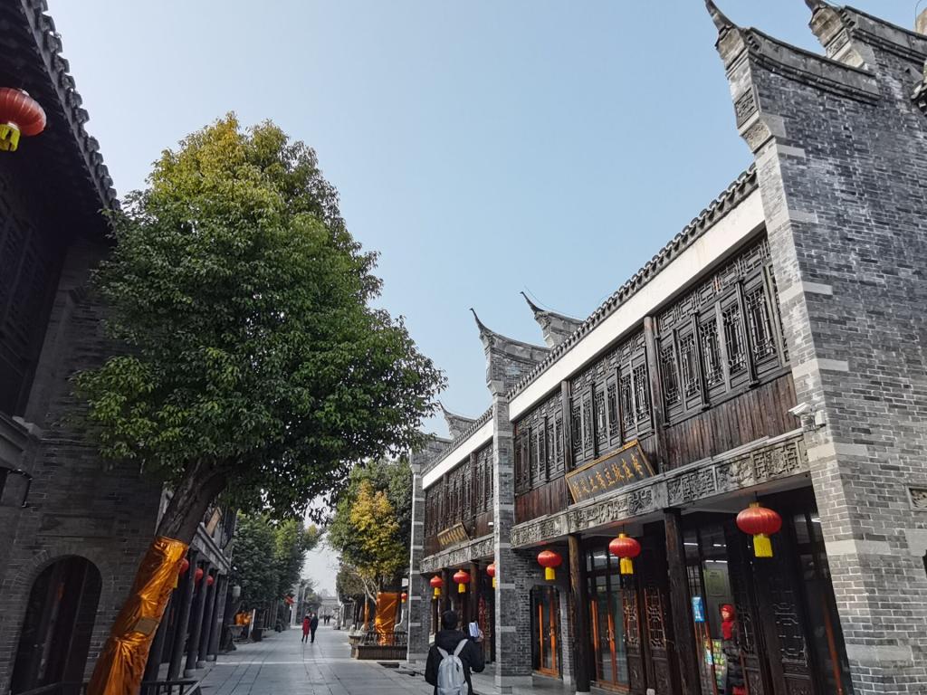 2022年1月17日上午,实地调研组成员抵达台儿庄古城景区进行实地探查。“时暇陟云构,晨霁澄景光。”,初入古城,队员们便惊叹于古人非凡的价值审美和匠心独运,人工建成的弯弯河道环绕着鳞次栉比的古建筑,亭台楼阁,池馆水榭,青松翠柏,点缀其中,远远望去,恍若置身明清,正在亲眼见证“商贾迤逦,一河渔火,歌声十里,夜不罢市”的繁荣景象。