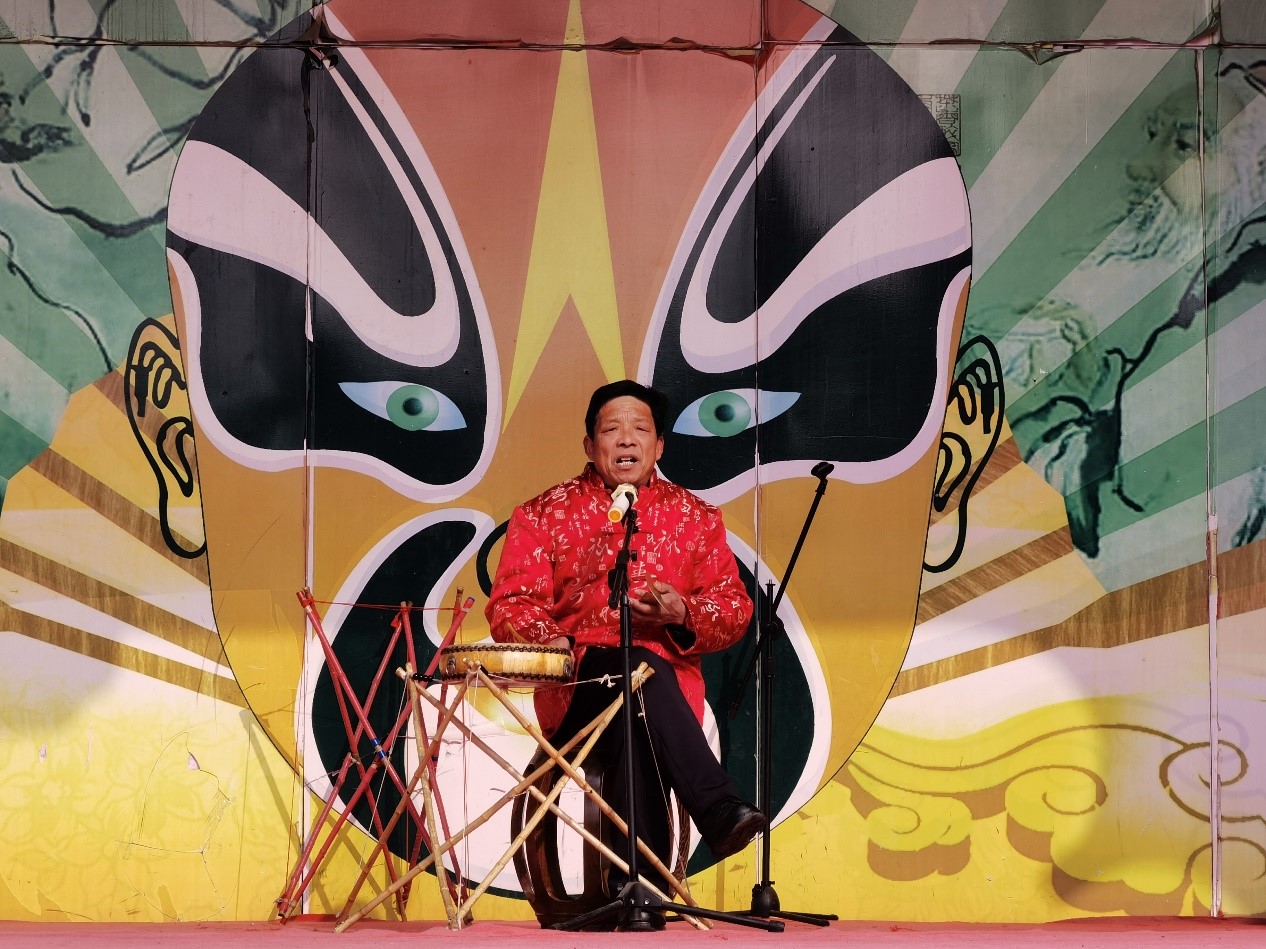 实践队首先来到“曲苑杂坛”大舞台,观赏表演。在曲艺节目时间,老师傅演唱了一段大鼓。通过老师傅的介绍,实践队员们了解到大鼓的曲艺种类丰富,被列为国家级非物质文化遗产的有京东大鼓、西河大鼓、鲁南大鼓和苏北大鼓等。此次老师傅演唱的是发源于徐州的苏北大鼓中有关中国历史的曲目。在表演期间,实践队员们认真聆听,仿佛跟随传唱人回到了过去,一起感受中国从清朝到新中国成立的艰辛历程。在五分多钟的演唱中,实践队员们的情绪一直被老师傅的演唱牵动,当听到慈禧垂帘听政时,队员们感到无奈;听到八国联军火烧圆明园时,队员们感到愤慨;听到香港、澳门被割让时,队员们感到心痛;听到孙中山领导辛亥革命时,队员们仿佛看到一丝曙光;听到毛泽东红色政权井冈山时,队员们仿佛看到红日耀人间;听到新中国成立时,队员们的眼眶不禁湿润,为中国共产党带领中国人民走过的艰辛路程由衷地敬佩。