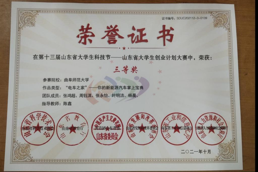 在正式开始写计划书之前我们看过很多篇相关论文,所以对新能源汽车也有所了解,新能源汽车的发展在近几年一直被作为关注热门,所以我们的内容的选择也是获奖的重要因素。另一方面,从开始准备比赛一路走来,在整个参与过程中,我感受到了坚持的力量。我们从大二暑假开始准备,正是因为坚持才拿到了这份荣誉。不要畏惧难题,参加比赛肯定会遇到特别多的难题,遇到问题就想办法去解决,不要去怕它、回避它。