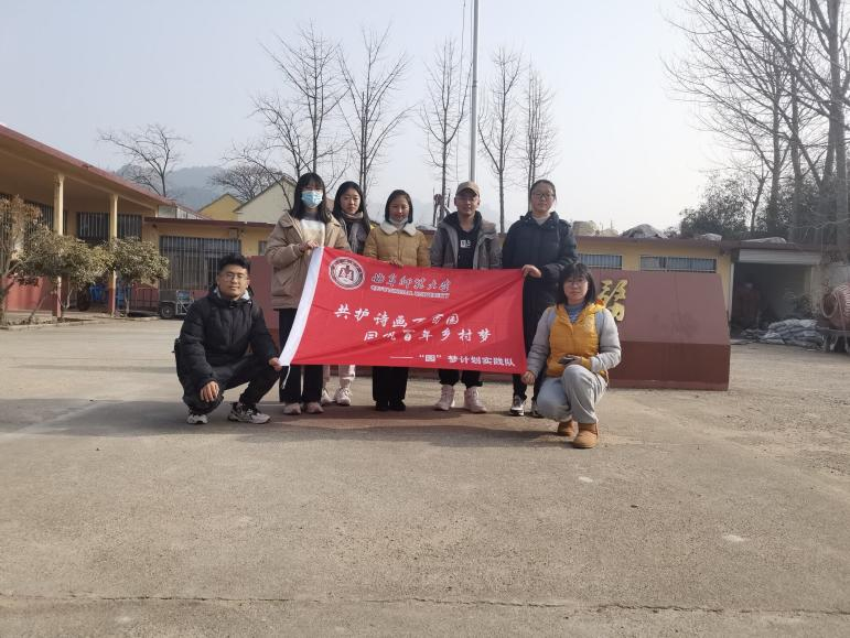 图为实践队员在松竹村村口合影