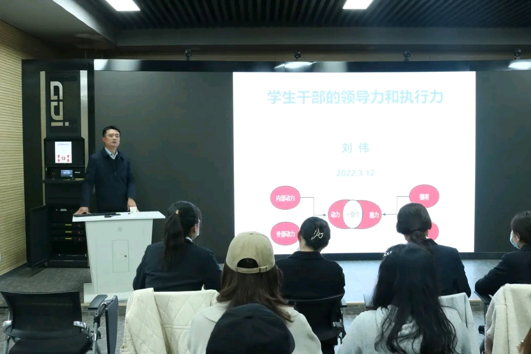 党委副书记刘伟担任主讲人,团委学生会全体主席团成员、部长参加。