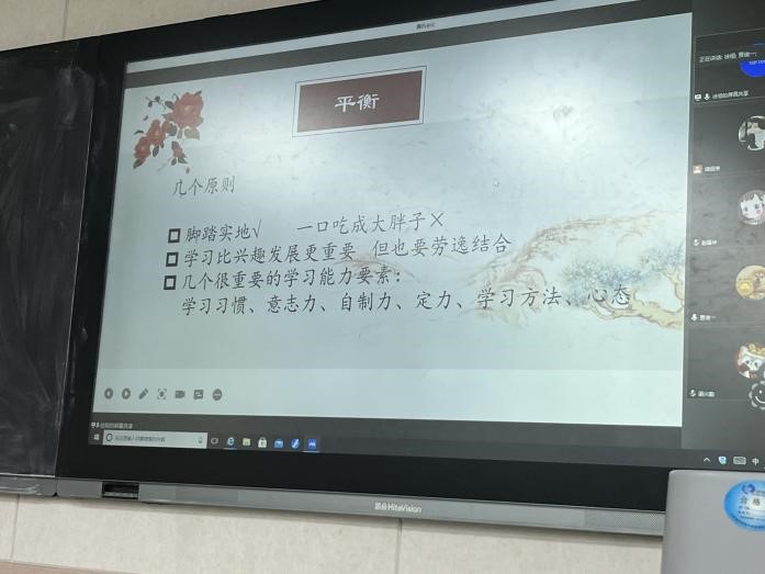 一贯坚持“辅导员+班主任+学业导师”三位一体,同频共振的全员育人模式。此次线上学习经验分享会,是谭丽荣老师作为“班主任+学业导师”组织的一次富有创意的特色班级活动。同学们认真聆听,从中汲取智慧和经验,对三位优秀师姐的分享报以热烈掌声。本次活动有利于引导同学们确立学习目标,明晰学习规划,为专业学习和个人人生规划起到良好的示范效应,必将激励同学们以饱满的热情和激昂的斗志迎接挑战。