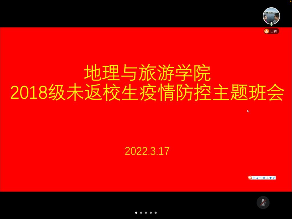 组织召开2018级“未返校生疫情防控”线上主题班会。班会由辅导员田青主持。