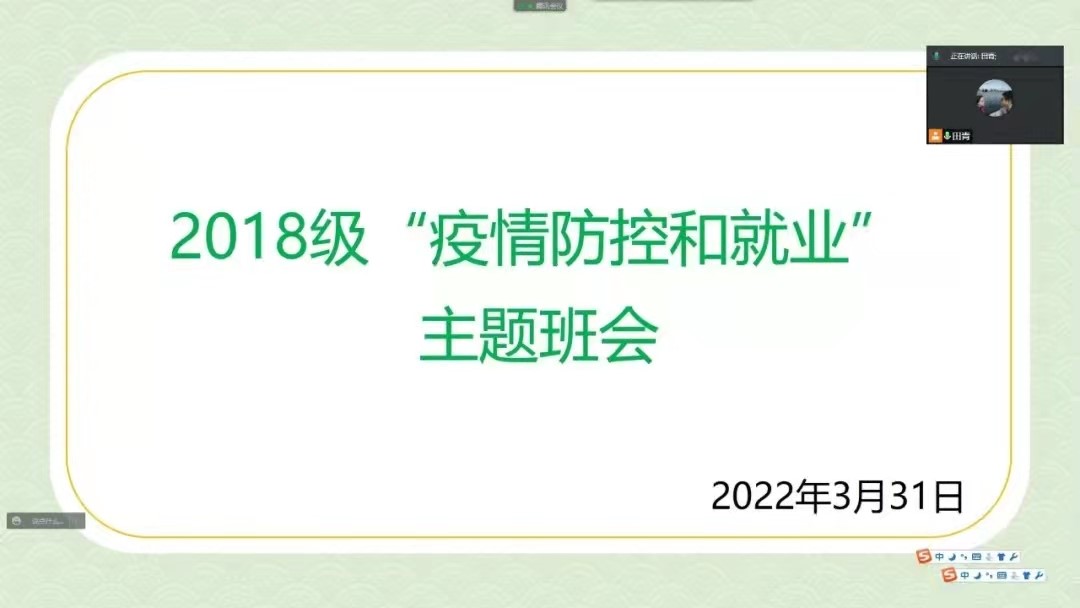 与属地疫情防控的各种措施,坚持“两点一线”,保障好自己的身心健康和生命安全,在清明节假期来临之际减少人员聚集和外出。班会上,各级老师分别就2018级同学的考研复试调剂和就业、2019级同学的实习工作等相关事宜具体讲解,并回应同学们关切的问题,帮助同学们更好地安排接下来的学习生活。同学们也认真听取老师讲解,积极参与互动。