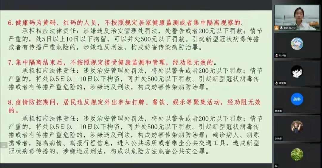疫情无小事,防护保安全,本次线上主题班会的顺利开展有助于同学们进一步增强安全意识,引导同学们做好疫情安全防护,为同学们接下来的学习与生活保驾护航。