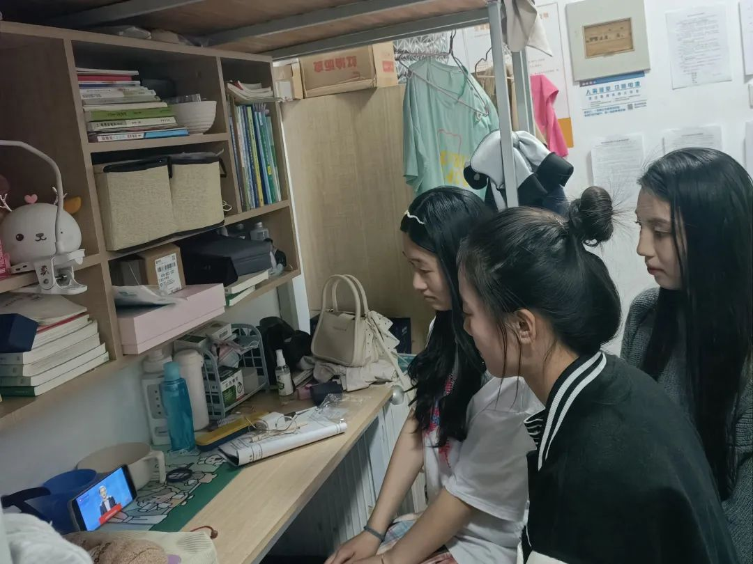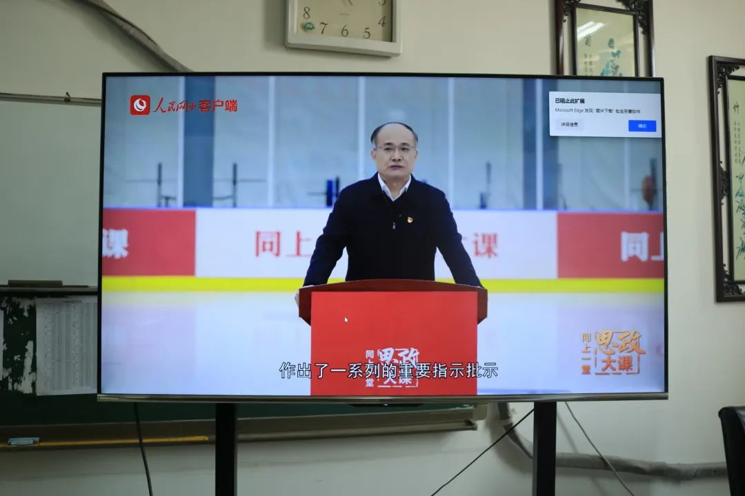 组织全体学生观看同上一堂“冰雪”思政大课,学生代表于S208观看学习。
