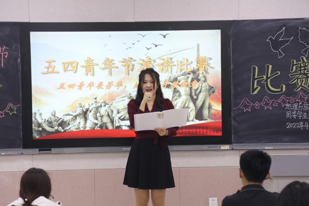于s206举办“五四青年展芳华,地理学子续新篇”演讲比赛。