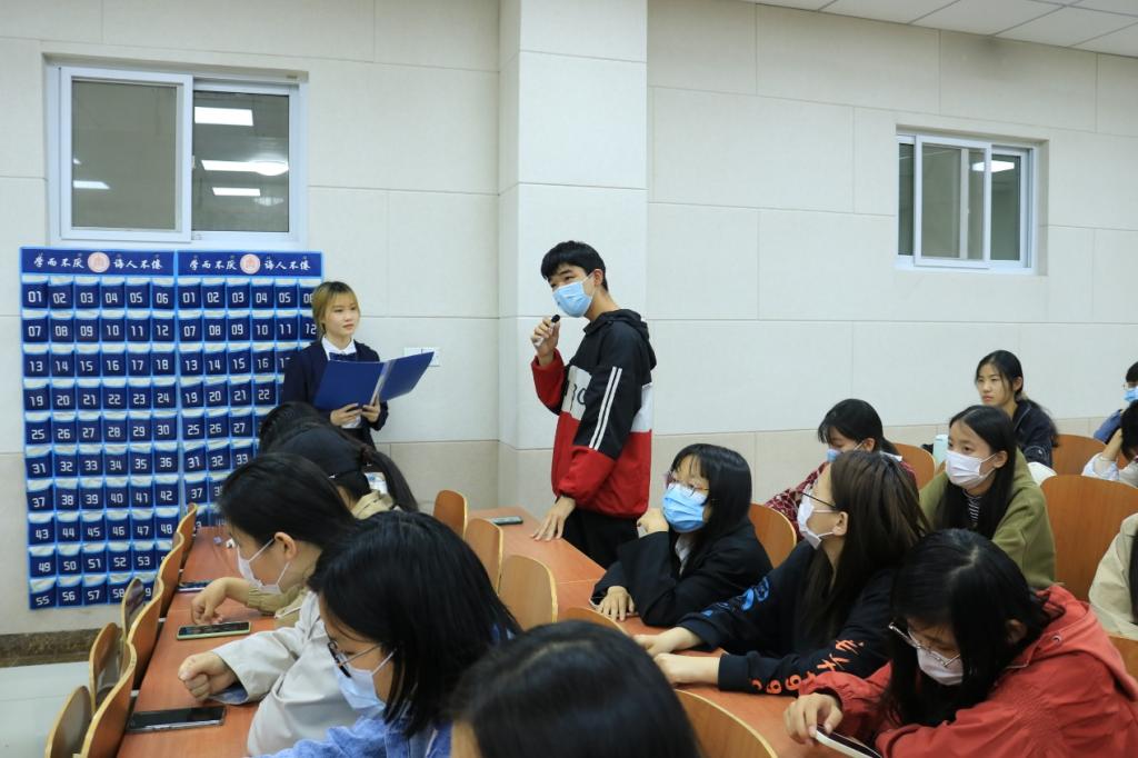 2020届优秀毕业生、退役大学生士兵季秀香担任主讲人,2020级辅导员张乃宁出席会议。