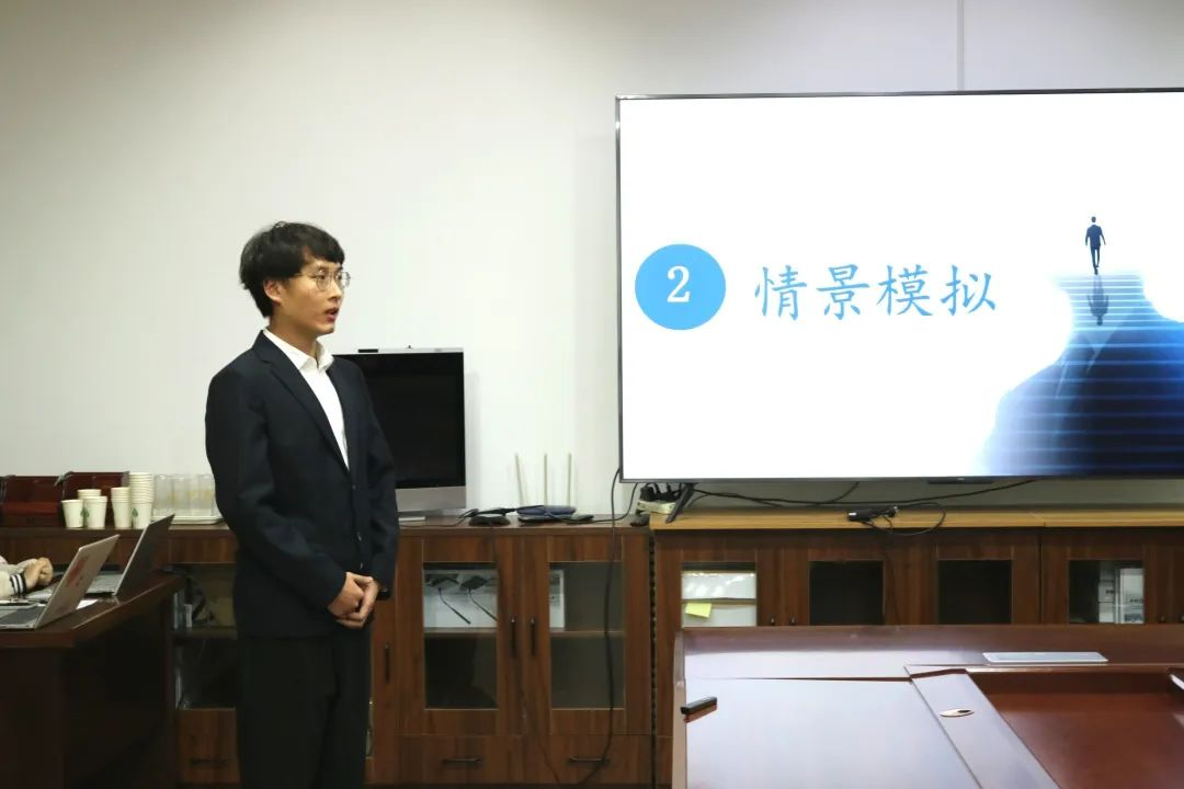 大赛第一环节,选手依次进行VCR展示和主题陈述:王汉成对自己的职业规划是成为一名环境评价工程师,他围绕自我认知、环境分析、职业定位、目标规划四个方面对该职业进行全方位剖析,通过各种测试数据进行自我分析,体现出他与这份职业的高度契合;黄晶蕊以一篇新闻开启陈述,分析了心理咨询师在当今社会中的不可替代性,又将职业需求和个人特点进行综合比较,立下目标,提出实现方式,努力向理想的职业前行。大赛第二环节为情景模拟:王汉成饰演一位环境评价工程师,在河流环境评价中尽显专业素养;黄晶蕊饰演一位心理咨询师,为被心事困扰的人们排忧解难。