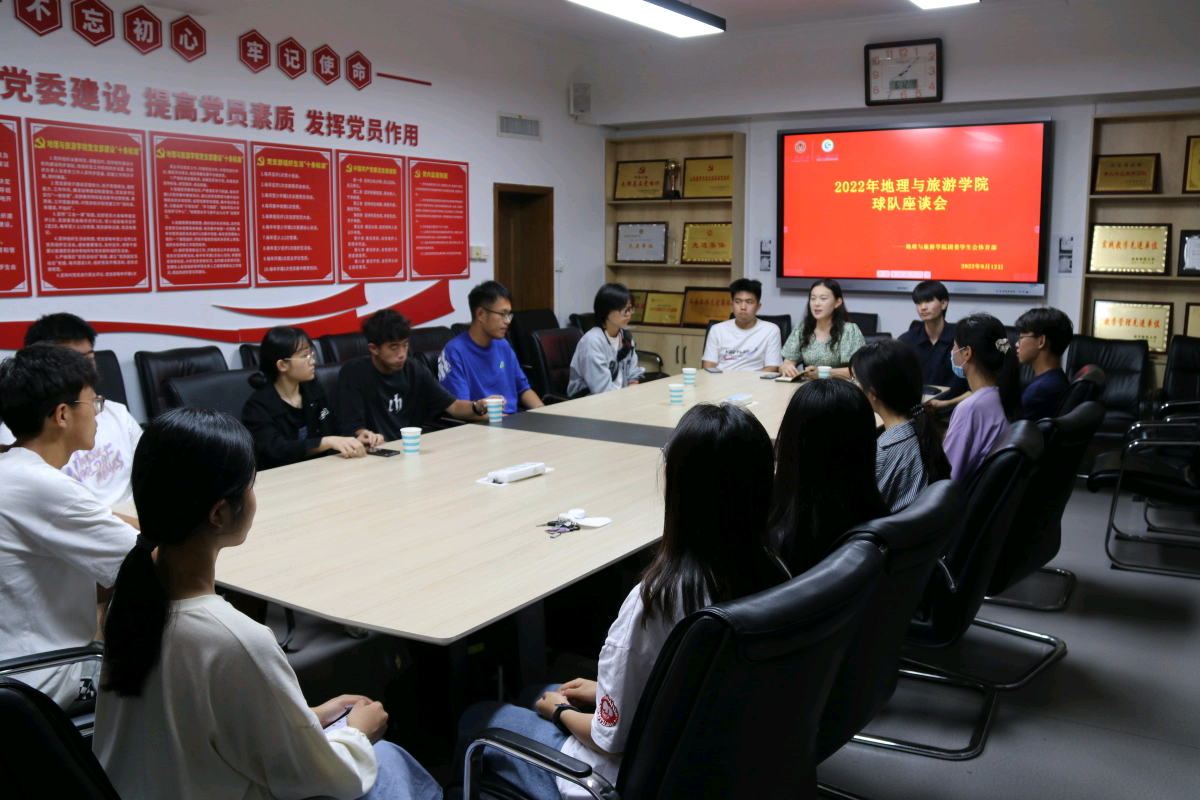 于会馆2401召开2022年球队座谈会。学生会分管主席李珂主持,体育部全体成员、各球队队长参加。