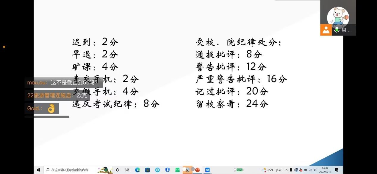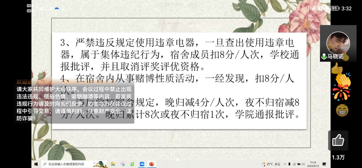 宿舍管理条例,细致讲解了宿舍卫生和宿舍安全等方面的相关内容,引导同学们进一步加深对大学生宿舍生活的了解。纪检部副部长详细介绍了黄金城官网