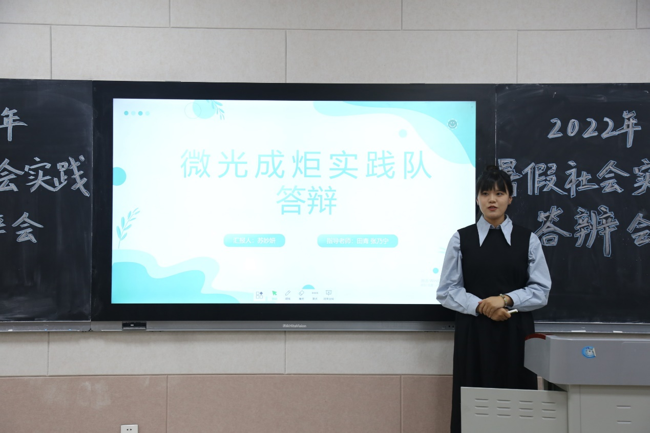 答辩会上,李梅向与会人员介绍本次答辩会的意义所在,强调要向优秀队伍学习经验。她要求大家要通过本次答辩会学会总结社会实践的宝贵经验,向先进队伍看齐,争取在以后的社会实践活动中创造更好的成绩。随后11支社会实践队伍先后进行答辩,各实践队伍从队伍组成、实践背景、实践目的、实践成果等方面进行讲解,评委们就各队伍的实践主题、实践形式及过程、实践成果等方面做出提问和点评。针对评委的问题,各团队代表沉着冷静、条理清晰。