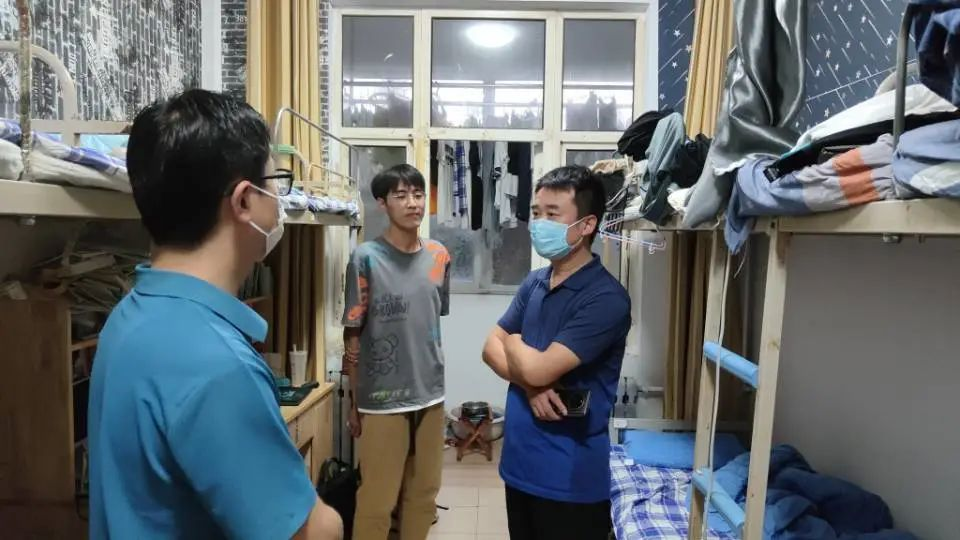 关怀入寝,温暖入心。刘伟详细询问同学们的学习及生活状况,鼓励各位学子学业生活两手抓,用功学习,学好专业知识,提升个人价值,用心生活,宿舍定期通风,注意个人卫生,打造舒适整洁宜居的生活环境。田青细心叮嘱同学们近日气温骤降,及时增添衣物,预防感冒。安全无小事,生命重如山,宿舍安全是重中之重。刘伟提醒同学们要注意宿舍用电安全,避免发生用电起火等情况,并对宿舍园区进行安全隐患大排查,进一步加强宿舍安全管理,防患于未然。他严把防疫关,强调当前疫情形势严峻,同学们要严格遵守黄金城官网