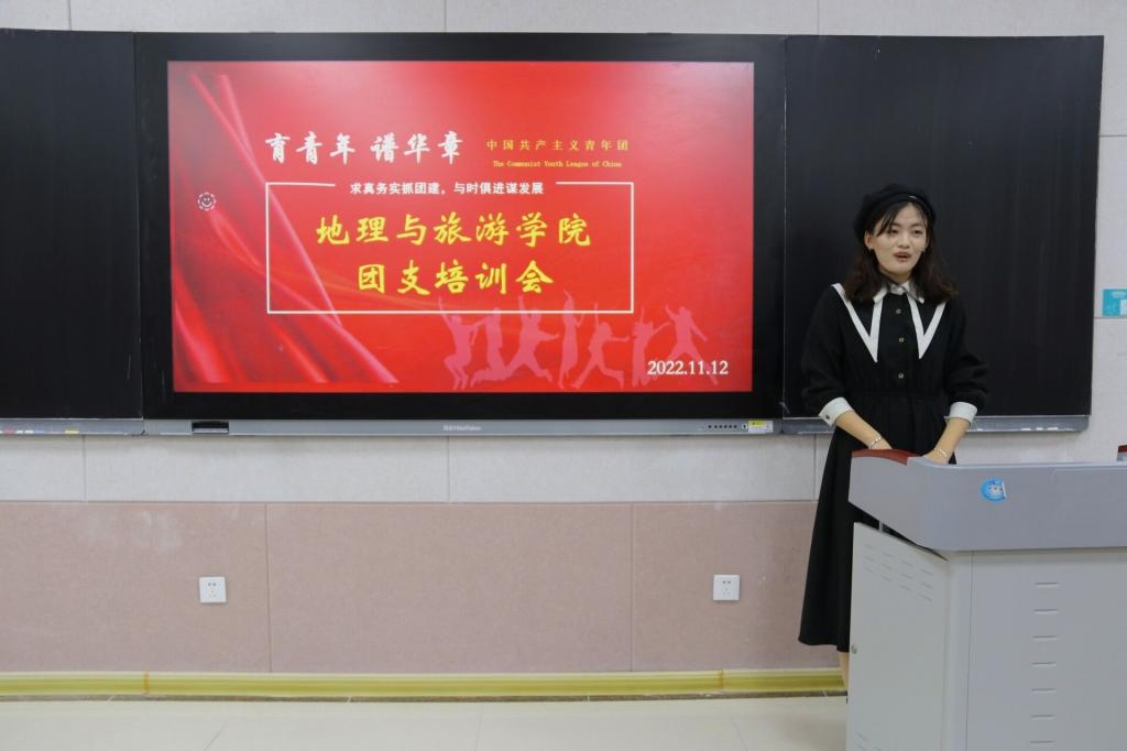 会上,刘梦璇从团支书的基础工作总览入手,介绍团支书的工作职责,使其对自己肩负的任务有了初步的了解;进一步从日常工作、年度工作、创新工作三个方面向团支书讲述一名优秀的团支书应该怎么做,一个优秀的团支部应该是怎样的,并向团支书们详细介绍发展团员的基本流程和对标定级的标准和步骤。刘梦璇强调,各团支书应积极开展好“三会一课”及自定义活动,及时督促同学们进行青年大学习,保质保量的写好会议记录,这不仅关系到优秀团支部的评定,更关系到本团支部发展团员的名额,各团支书必须予以高度重视。