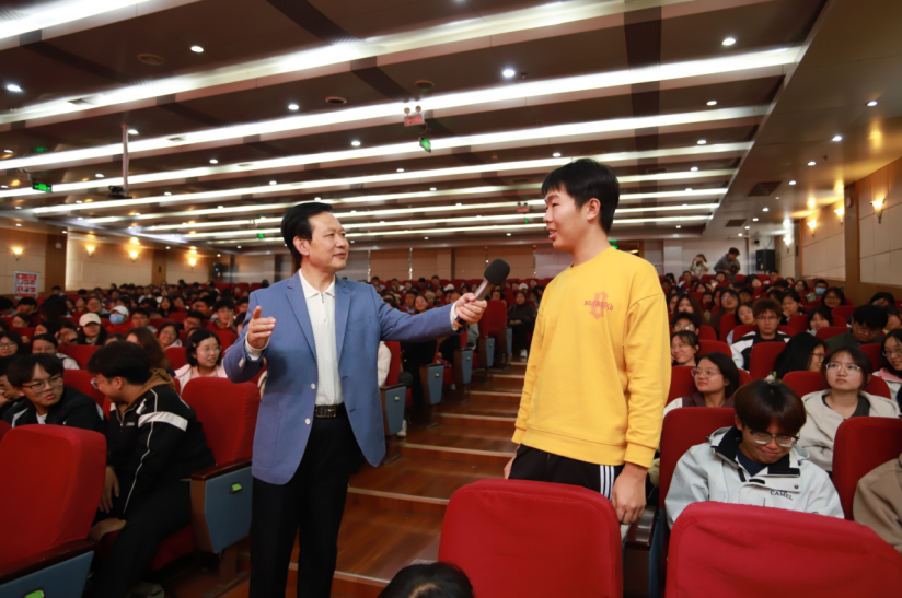 在随后的报告中,滕兆敏从雷锋是怎样的一个人、雷锋精神的内涵是什么、雷锋精神是怎样形成的,新时代的青年大学生该怎样传承雷锋精神等方面,对雷锋精神进行了生动全面的阐释,他以详实的历史资料,平实的语言,从苦难雷锋、阳光雷锋、青春雷锋、先锋雷锋、美好雷锋、永生雷锋等不同人生阶段,多角度为现场听众呈现了一个真实、平凡、伟大、美好、永恒的雷锋。生动形象阐释了雷锋同志全心全意为人民服务的“八个一”精神:一团火的奉献精神,一滴水的团结精神,一颗钉的钻研精神,一粒米的节约精神,一块砖的劳动精神,一片叶的感恩精神,一缕光的自强精神,一颗心的傻子精神。他还结合自己两次走访雷锋班的实际感受,引导同学们进一步知雷锋、爱雷锋、学雷锋、做雷锋,做一颗永不生锈的螺丝钉,让师生们对雷锋的事迹、精神有了更加真实而鲜活的认识。报告会现场气氛热烈,掌声不断,气氛活跃。