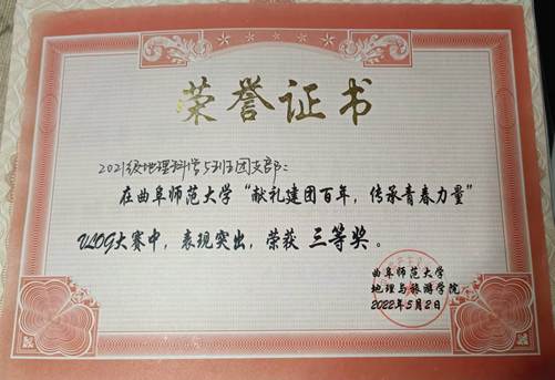“献礼建团百年,传承青春力量”vlog大赛中获得三等奖;