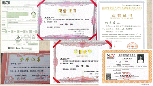 4.精益求精,各有所长。1人雅思英语考试成绩7.0,2人在全国大学生英语竞赛获奖,2人在山东高校地理G5联盟地理学联合野外实习中获奖。