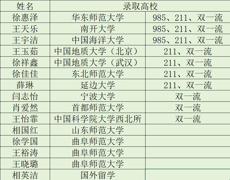 ,徐惠泽推免至华东师范大学、徐佳佳推免至东北师范大学。