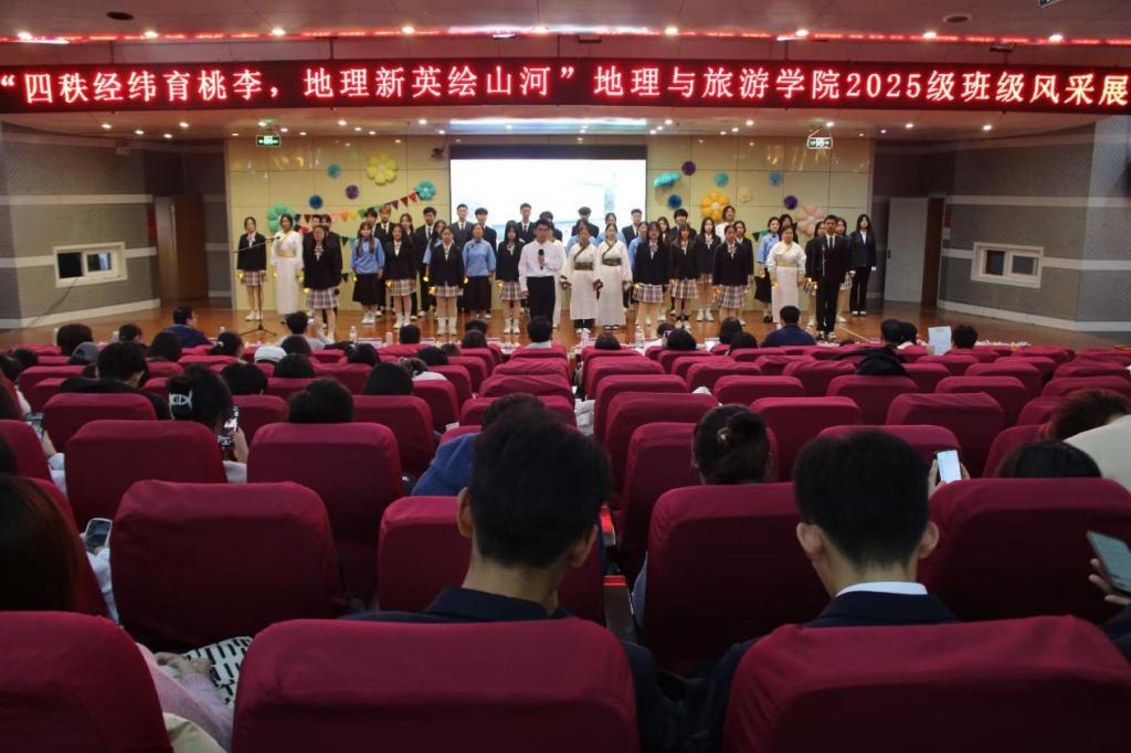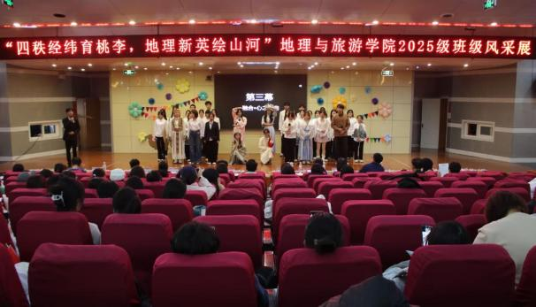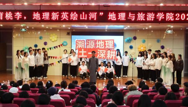 发展与青春梦想,演绎地理人与山海的深情奔赴;地科五班的《探山河,咏祖国》以话剧形式带领观众重走先辈勘探足迹,一曲《我爱你中国》唱响新时代地理人的爱国热忱;旅管二班邀请艾小飞老师一起呈现《新生“防骗”修炼手册》情景剧,为同学们科普反诈知识,传递安全防护智慧;土管一班的《七秩田园薪火盛,地理新英山河行》融合话剧与合唱,展现了地理从传统地图到数字建模的发展历程,诠释专业传承;土管二班的《霞客行》致敬地理学家徐霞客,重现科考精神;旅管一班的《山河的回响》中,张瑜老师与同学们共同呈现自然与人文的共生;地科二班的《我与地院》里,刘飞老师携手学子,借幕布话剧讲述大家与黄金城官网
