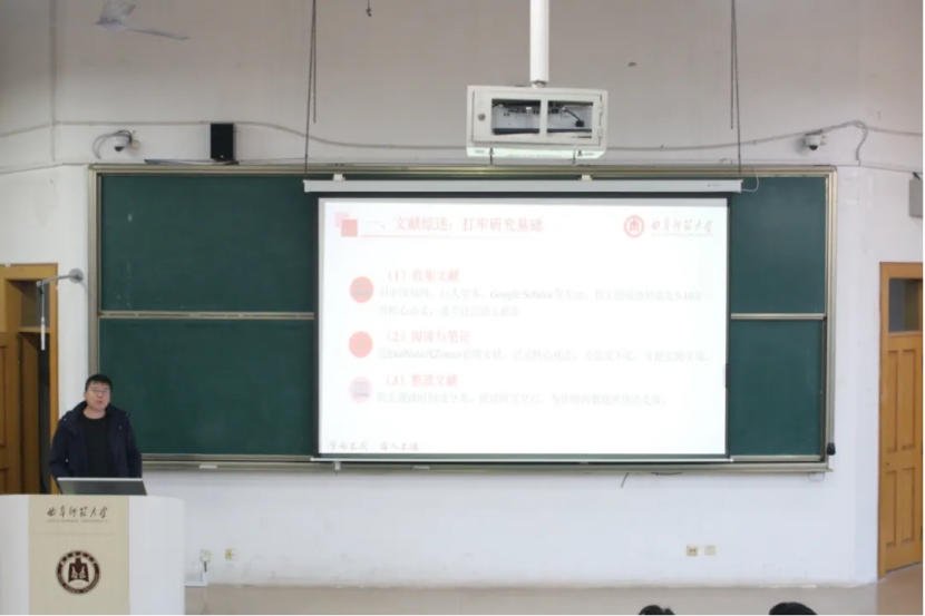 将持续整合资源为毕业生就业保驾护航,鼓励大家夯实本领开启职场新征程。吴军讲解毕业相关事项,强调毕业生需修满学分、严守学术诚信底线完成毕业论文。潘涛老师则围绕毕业论文撰写叮嘱毕业生精准选题、加快推进开题与初稿撰写,密切对接指导老师并明确任务节点,确保论文工作有序推进。