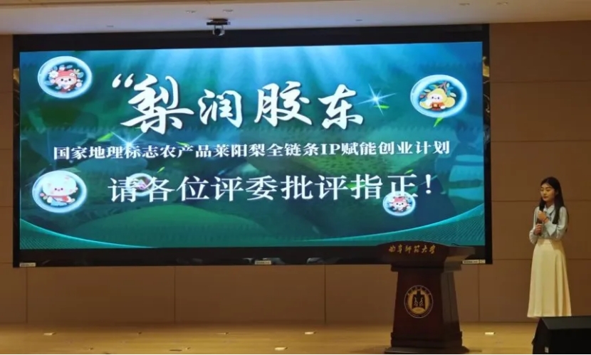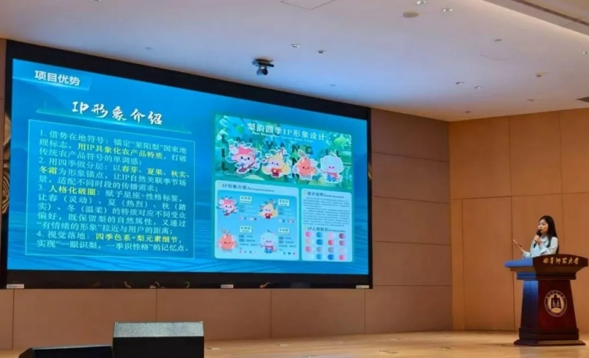 “梨创新农队”的“梨润胶东·IP新生”国家地理标志农产品莱阳梨全链条IP赋能创业计划项目凭借扎实储备和突出创新优势成功斩获校级金奖。