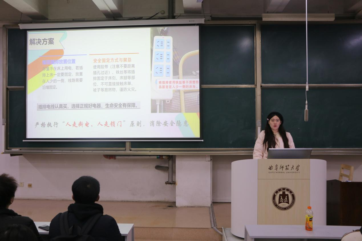 会上,董青围绕宿舍安全与卫生管理展开重点部署。安全层面,她着重强调用电防火安全,要求所有宿舍严格落实“人走断电”制度,规范电线、插线板及充电宝使用,严防安全事故造成人财损失;同时对宿舍内吸烟饮酒行为作出警告,明确禁止此类违规行为,强化安全防范意识。卫生管理方面,针对上周宿舍检查中发现的卫生问题,她要求舍长切实履行督促职责,牵头组织舍友做好日常清洁,持续维护宿舍整洁环境。此外,董青辅导员还部署了离校统一断水断电相关事宜,进一步筑牢宿舍生活安全防线。
