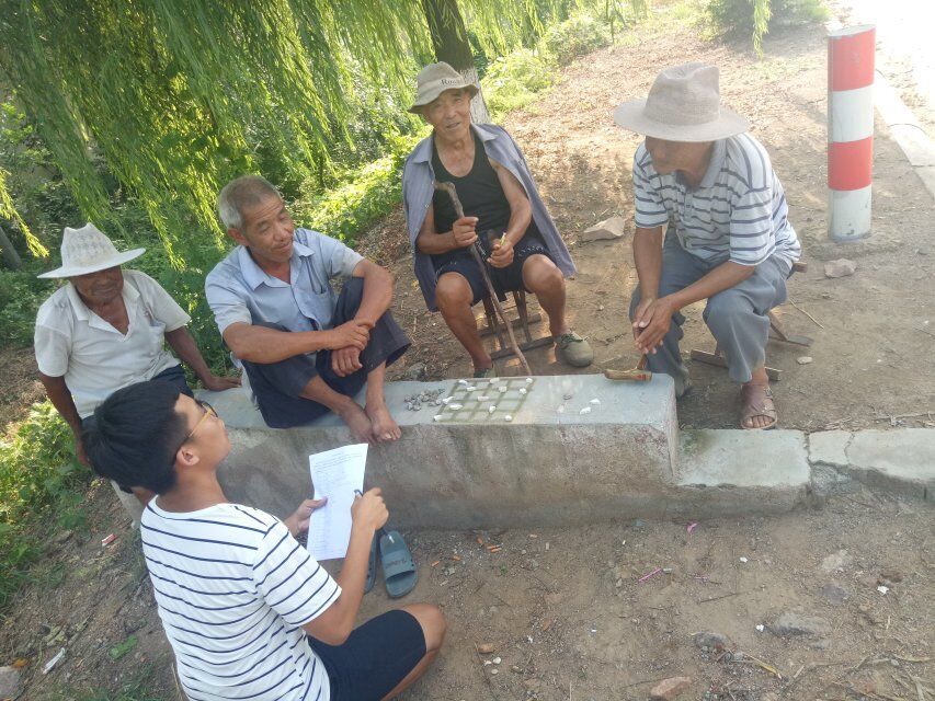 成员们拿着问卷走街串巷,卧石岭村的村民以中老人和小孩居多,问卷上的文字内容对于大部分人来说不是很理解,成员们耐心的,为每一位被访者细心讲解,而村民们,也都积极配合我们的问卷调查,表现出了极高的热情。在小巷口,在树荫下,在农田里,在老旧屋檐下,都留下了成员们的身影,杂货店的阿姨,街边的行人,乘凉的农民,工作中的大叔,甚至是上小学的孩子,都接受了我们的问卷调查,成员们得到了大量的信息。与此同时,大量的走访,也促进了成员们对卧石岭村人文环境,自然环境的了解,为进一步完善实践策划,提供了条件。卧石岭村,民风朴素,自然氛围浓厚,风景秀丽,具有很大的旅游潜力。
