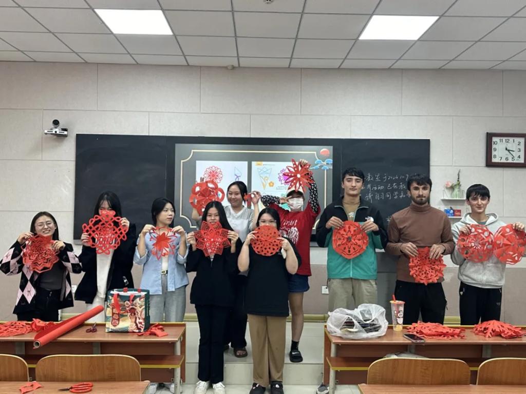 走进剪纸活动现场,留学生们都在全神贯注地完成自己的作品,剪刀在同学们的手中舞动,一幅幅精美的窗花作品逐渐成型。对于大部分留学生同学来说,这虽然他们第一次接触剪纸窗花,技艺有些生疏,但是经过认真地学习和亲身地体验后,多种多样的窗花作品在同学们手中生动呈现,他们真切地感受到了中华传统文化的独特魅力,加强了对中华文化的认同感。在剪窗花的过程中,同学们不仅对窗花的历史和作用有了更进一步的了解,学会了简单的窗花作品制作的方法,还激发了她们对中国传统非遗项目—剪纸的兴趣和热爱。