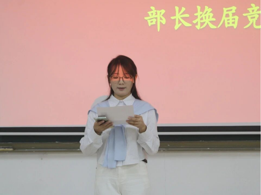 为持续优化社团管理体系,激发社团发展活力,搭建学子实践成长的优质平台,10月25日,我院于S102、S103举行2025届社团部长换届竞选。本次活动由团委学生会社团管理部承办,社团管理部成员、各社团社长及部分骨干担任评委,全程秉持公平、公正、公开原则把控竞选流程。
