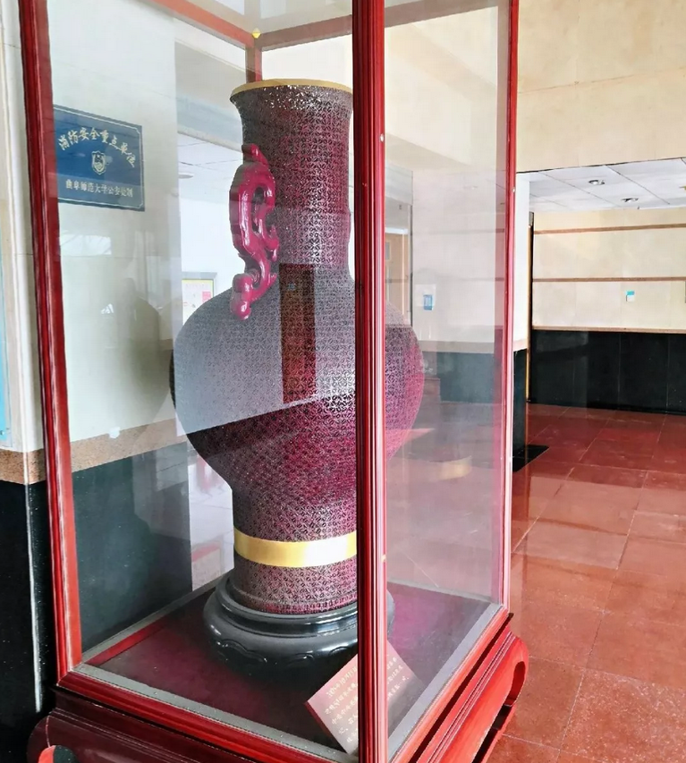 校友、时任黑龙江省委书记宋法棠赠送的一对庆祝曲园建校50周年的巨型粘核桃花瓶。不过宋书记来曲园参加完校庆回去后2月就卸任省委书记啦,甚是遗憾。。。