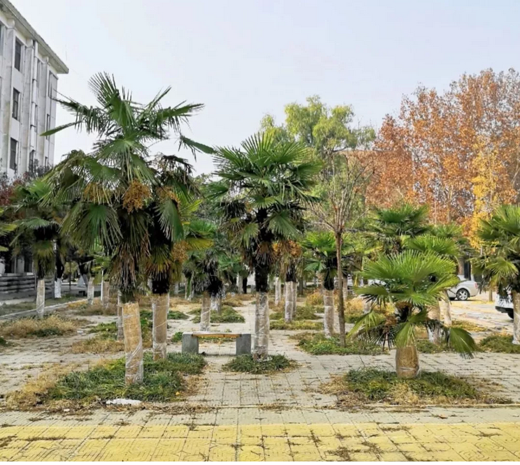 楼前左侧广场上,毕业那年刚刚种上的棕榈树现在已亭亭如盖。