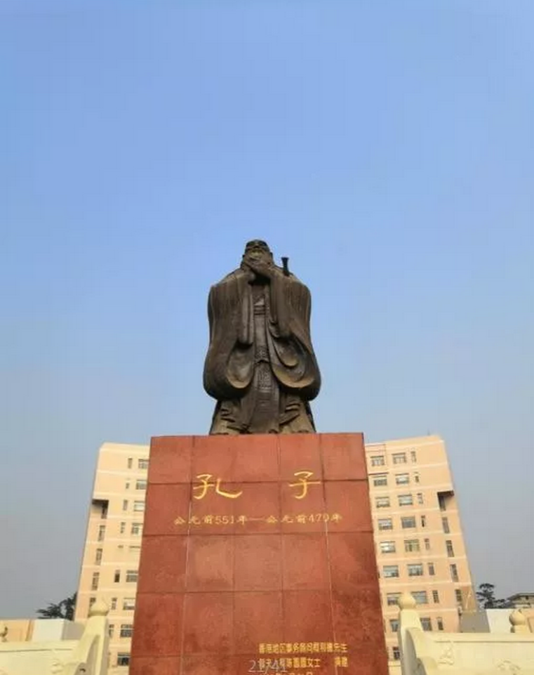 柯利德先生捐建的孔子像依旧矗立在科技楼前,就喜欢孔老夫子那“任凭风吹雨打,我自岿然不动”的样子。