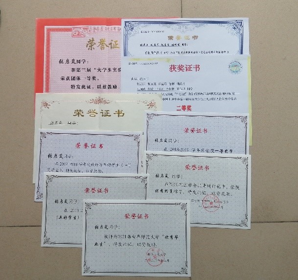 自我介绍(姓名,班级,曾担任的职务,获得的奖项、荣誉等,附奖状、证书照片)