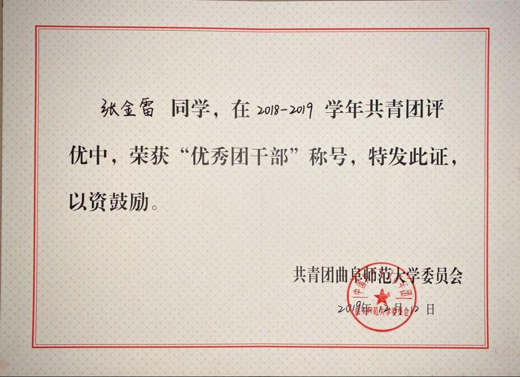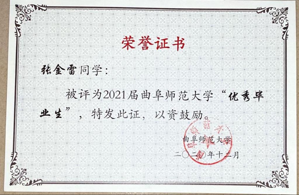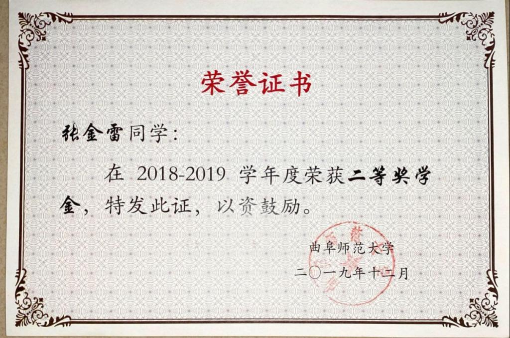 “优秀毕业生”、“优秀学生干部”、“优秀团干部”、二等奖学金、黄金城官网